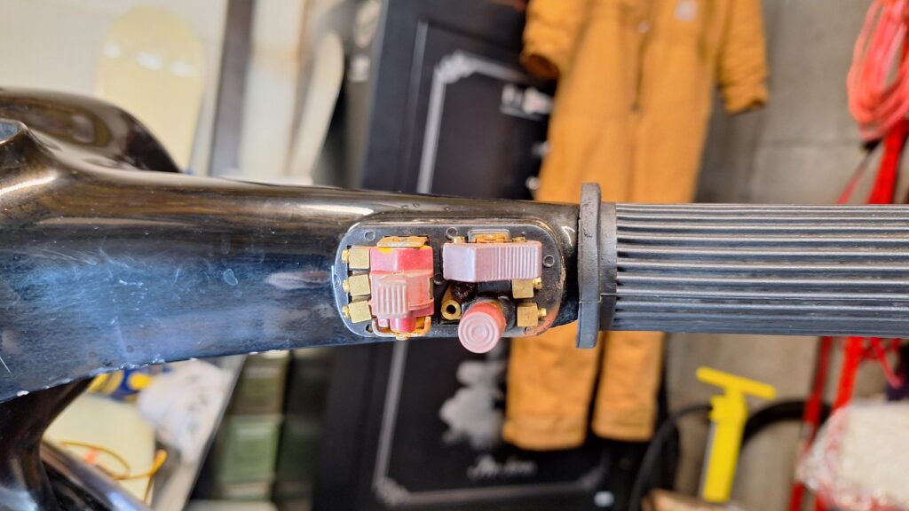 The existing switch functioned well, but I wanted to freshen it up a bit. I was confused about the kill button because there didn’t seem to be one, but once I popped the cover off, I discovered the button INSIDE the case. For the purpose of a good before photo, I replaced it before snapping these photos. (It is the bright orange button on the right side – bright because it was protected from the sun inside the switch for all those years.)