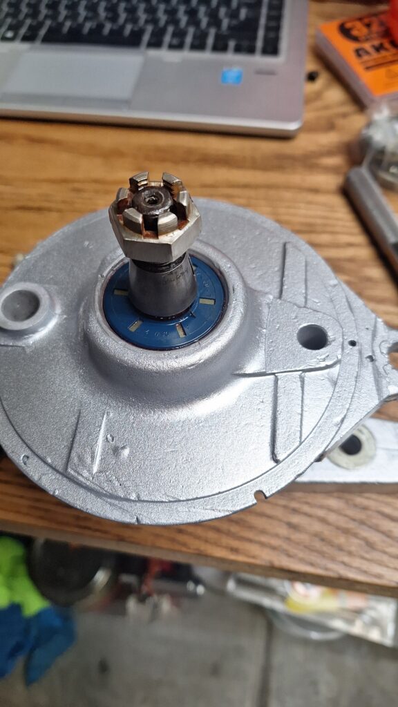 And here is the painted hub with a new oil seal and the main bearing seated.